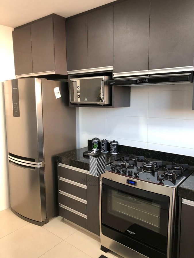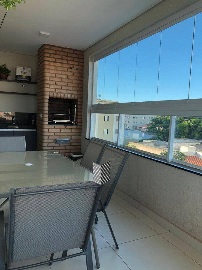 Apartamento: Sala em 2 ambientes, cozinha tradicional e ampla com depurador de ar, lavanderia independente e varanda gourmet com cortina de vidro, armários planejados, porcelanato, 3 quartos (sendo 1 suíte com ar-condicionado) e 1 banheiro social. Janelas acústicas nos quartos, porta de entrada com fechadura eletrônica, garagem para dois carros.