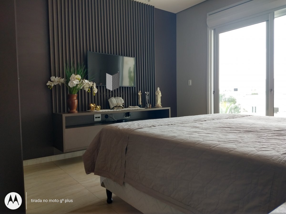 Casa Sobrado: Sala em três ambientes pé direitoduplo, cozinha ilha central toda montada, elevador, quatro dormitórios sendo duas suítes mastere duas semi suites todas com armários e ar condicionado, escritório e sala intimatodo montado,área de lazer com piscina, quiosque, jardins, ducha, banheiro de lazer,maquinários, piso antiderrapante, agua quente, porcelanato e pedra. escada em madeira e aço, janelas e venezianas elétricas, porta social em ACM.Material Composto de Alumínio. portão e porteiro alarma e cerca monitorada. sistema de iluminação projetado.